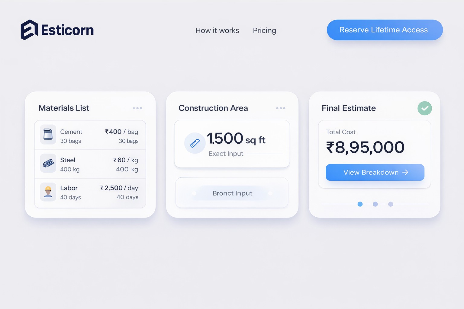 Born out of real frustrations faced by small contractors and builders, Esticorn is designed to fit real-world construction workflows. Whether you’re estimating a single house or managing multiple projects, Esticorn helps you move from idea to execution with confidence.